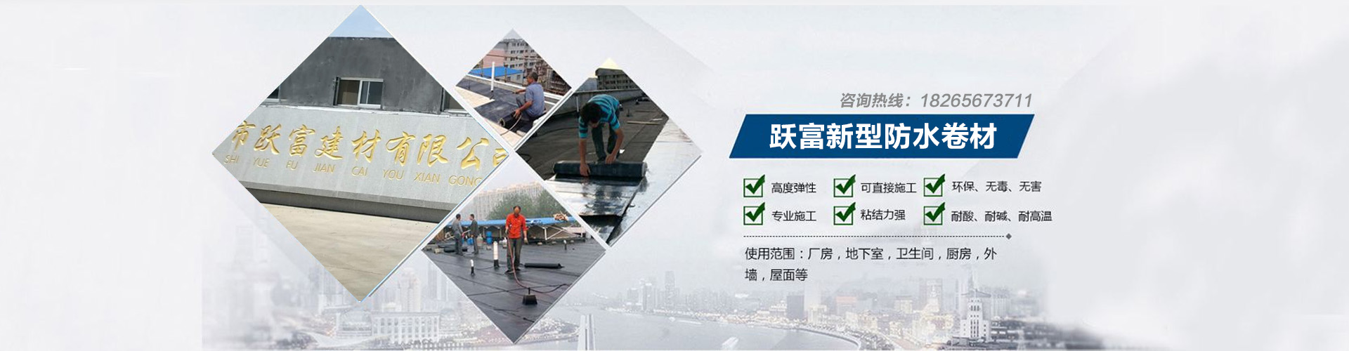 濰坊市躍富建材有限公司是一家集研發(fā)、生產(chǎn)、銷(xiāo)售、技術(shù)服務(wù)、防水專(zhuān)業(yè)承包于一體的創(chuàng)新型建筑防護(hù)系統(tǒng)服務(wù)商。公司全面推行ISO9001:2008國(guó)際質(zhì)量管理體系,同時(shí)通過(guò)ISO14001:2004國(guó)際環(huán)境管理體系認(rèn)證及GB/T28001:2011職業(yè)健康安全管理體系認(rèn)證。 公司產(chǎn)品涵蓋九大系列、五十六個(gè)單品,可以滿(mǎn)足各種構(gòu)筑物不同部位的防水要求。 持之以恒,是我們成長(zhǎng)的基石;長(zhǎng)盛不衰,是我們奮斗的目標(biāo);打造享譽(yù)世界品牌,是我...